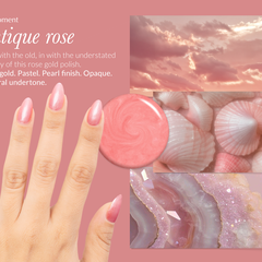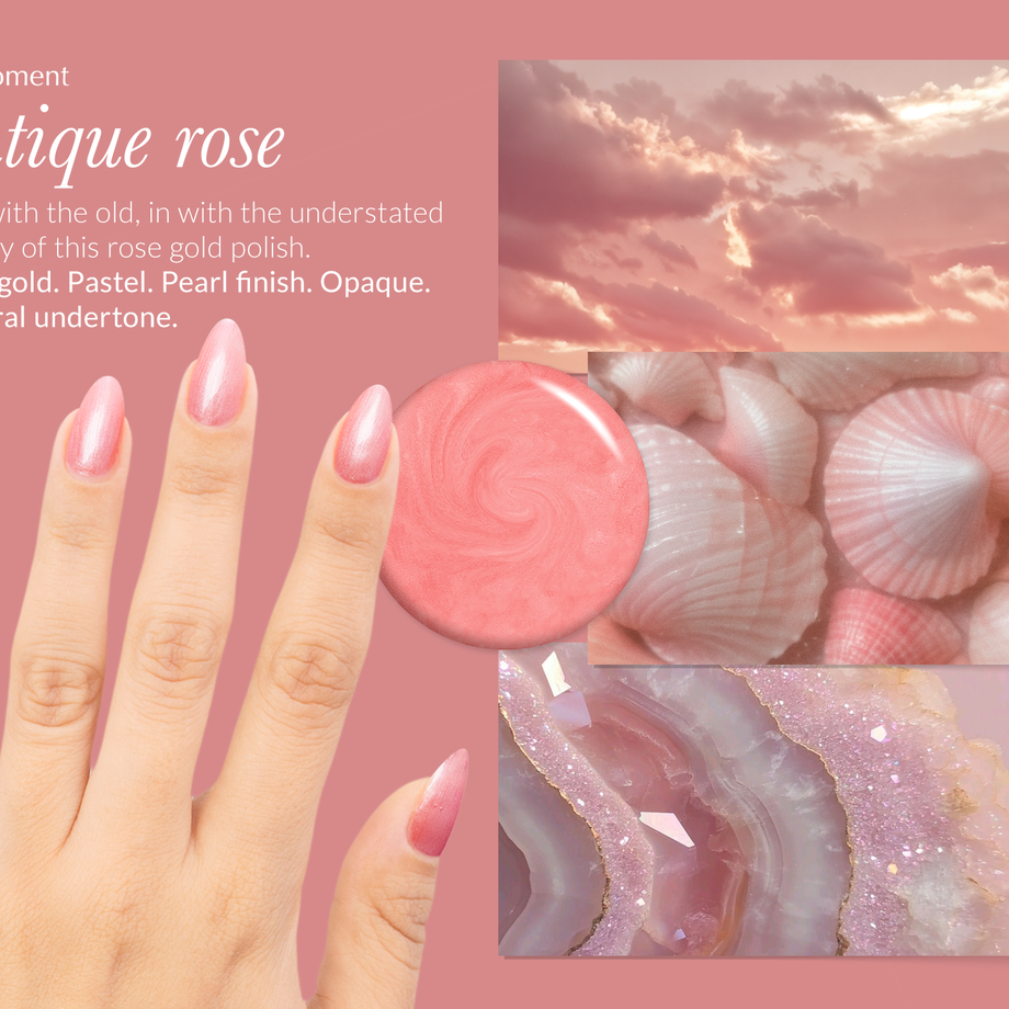 Out with the old, in with the understated beauty of this rose gold polish.Rose gold. Pastel. Pearl finish. Opaque. Neutral undertone.