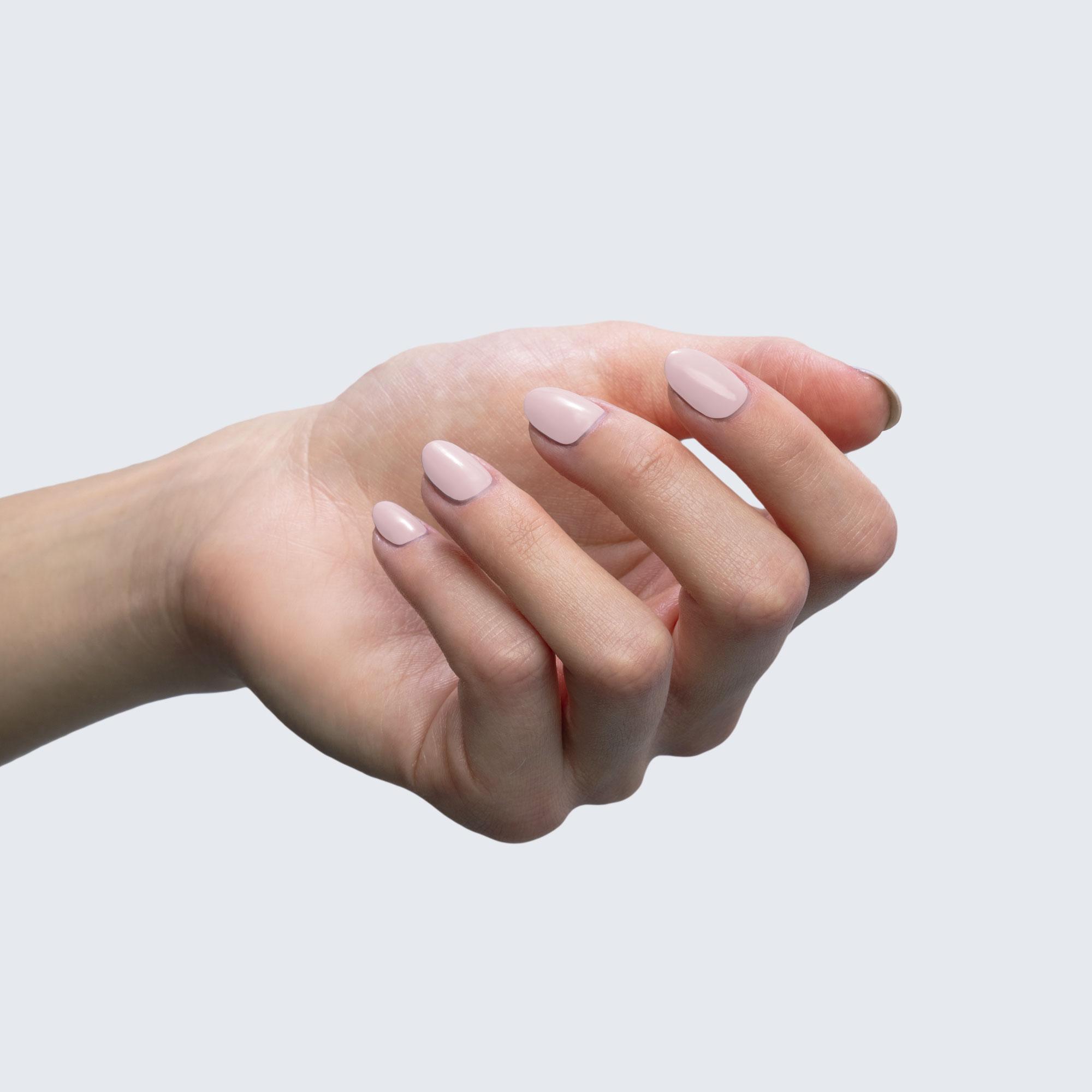 Dusty pink. Light. Muted. Opaque. Warm undertone.